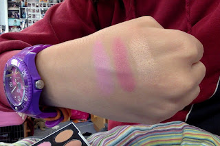 This is the blush and highlight, the blush is very nice, and blends out nicely, which is good because the blush is very pigmented, so use a light hand! It swatches with a bit of shimmer, but you can't see it on the cheeks. The highlight is gorgeous, and reminds me a bit of the Mary-loumaniser from the balm (don't quote me on that though!), but it is very flattering for my skin type.